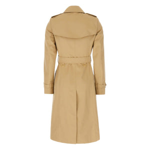 archive beige cotton gabardine weave tonal stitching classic collar epaulettes storm flap long sleeves with belted cuffs belt loops detachable and adjustable waist belt two side welt pockets knee-length central rear vent Vintage Check-pattern lining straight hem double-breasted button fastening Chelsea cotton trench coat Size and Fit - This piece fits true to size. We recommend you get your regular size. Model is 1,75m / 5ft 8in wearing size 8 (UK)