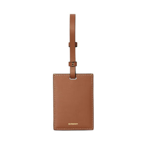 House-check leather luggage tag from BURBERRY featuring archive beige, multicolour, calf leather, grained texture, house check pattern, logo stamp to the rear, contrast stitching and adjustable strap to the front. Check motif leather luggage tag