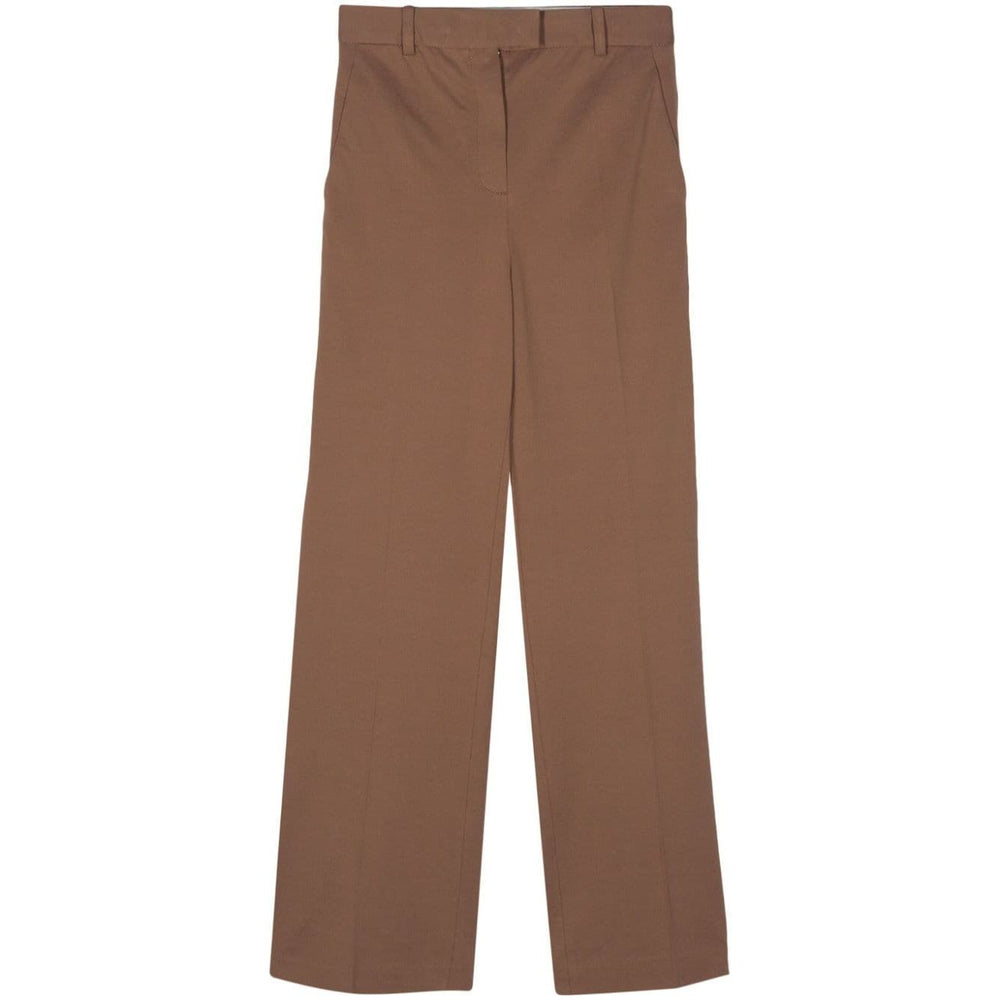 chocolate brown cotton blend piqué weave pressed crease dart detailing low-rise straight leg two side inset pockets rear button-fastening pocket unlined belt loops concealed front button, hook and zip fastening Pique trousers Size and Fit - This piece fits true to size. We recommend you get your regular size. Model is 1,75m / 5ft 8in wearing size 40 (IT)