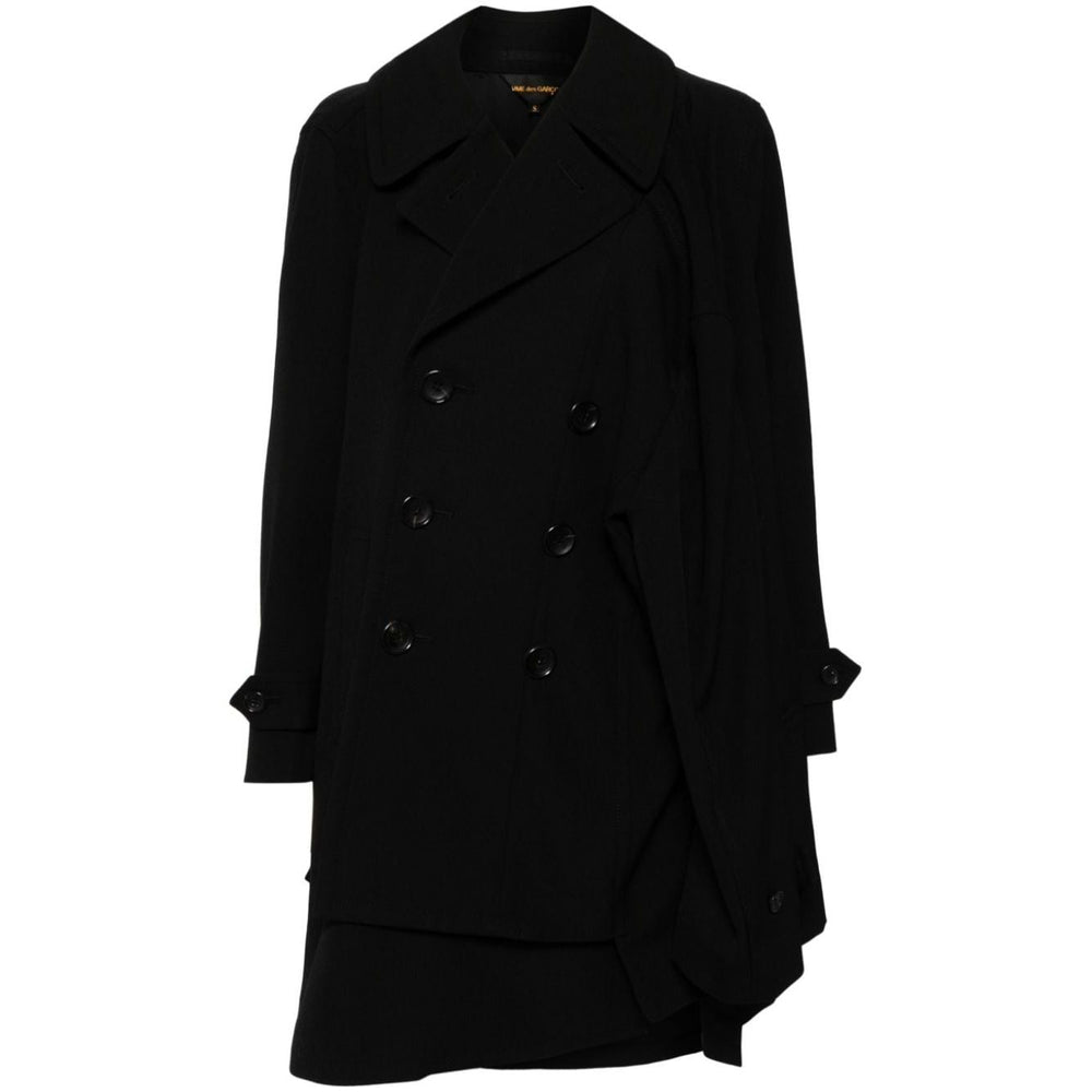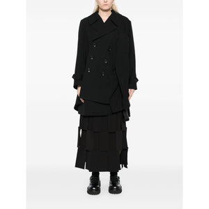 black wool double-breasted button fastening side slash pocket asymmetric sleeves Ulster lapels asymmetric hem Wool double-breasted coat