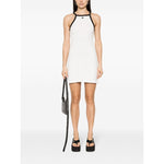 white/black cotton soft jersey halterneck contrasting border buckle-detail shoulder strap sleeveless appliqué logoat the chest internal logo tag thigh-length straight hem Buckle contrast short dress Size and Fit - This piece fits true to size. We recommend you get your regular size. Model is 1,75m / 5ft 8in wearing size S