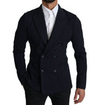 Dolce & Gabbana Dark Blue Dotted Double Breasted Coat Blazer