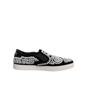 Dolce & Gabbana Black Embellished London Men Slip On Shoes