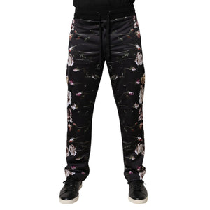 Dolce & Gabbana Black Floral Polyester Jogger Pants