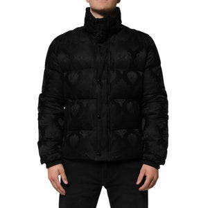 Dolce & Gabbana Black Jacquard Quilted Puffer Bomber Jacket
