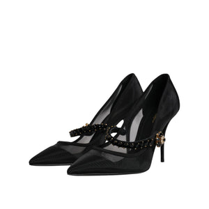 Dolce & Gabbana Black Mesh Mary Jane Crystal Heel Pump Shoes
