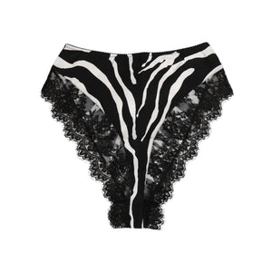 Dolce & Gabbana Black Silk Zebra Print Lace High Waist Underwear