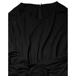 Dolce & Gabbana Black Wool Long Sleeves Sheath Midi Dress
