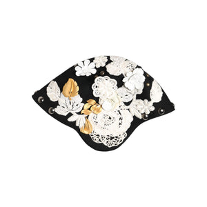 Color: Black with white floral Ricamo, gold and silver metal detailing
