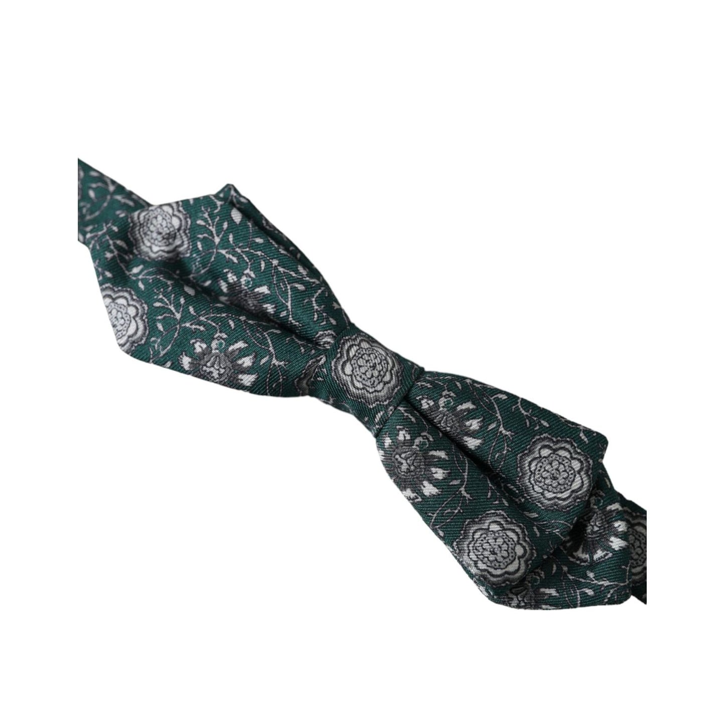 Dolce & Gabbana Green Silk Floral Adjustable Neck Men Bow Tie