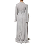 Dolce & Gabbana Grey Pleated Maxi Long Sleeve Silk Blend Gown Dress
