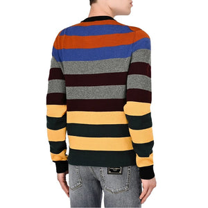 Dolce & Gabbana cashmere crewneck sweater with multicolored horizontal striped print and logo lettering on the chest
