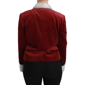 Dolce & Gabbana Red Velvet Baroque Crystal Blazer Jacket