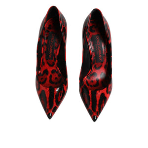 Dolce & Gabbana Red Leopard Leather Stiletto High Heels Pumps Shoes