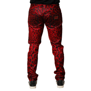 Dolce & Gabbana Red Leopard Print Cotton Skinny Denim Jeans