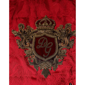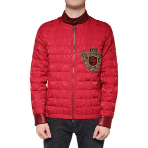 Dolce & Gabbana Red Quilted Bomber Gold Crown Logo Jacket