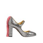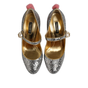 Dolce & Gabbana Silver Glitter Mink Fur VALLY Pump Shoes