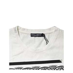 Dolce & Gabbana White Bandana Cotton Men Crew Neck T-shirt