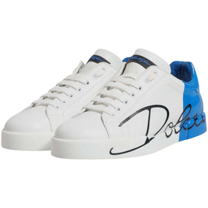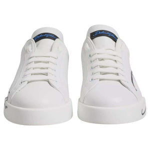 Dolce & Gabbana White Blue Leather Logo Low Top Sneakers Shoes