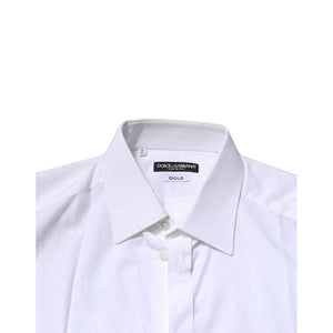 • Dolce & Gabbana White Cotton GOLD Long Sleeves Formal Shirt