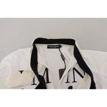 Dolce & Gabbana White Cotton Printed Ascot Collared T-shirt