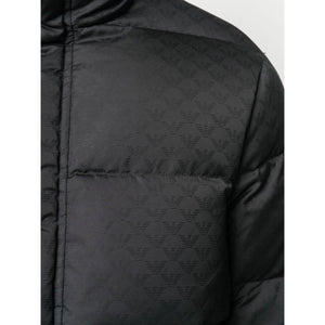 black quilted monogram print two front welt pockets high neck long sleeves concealed front fastening Nylon short down jacket