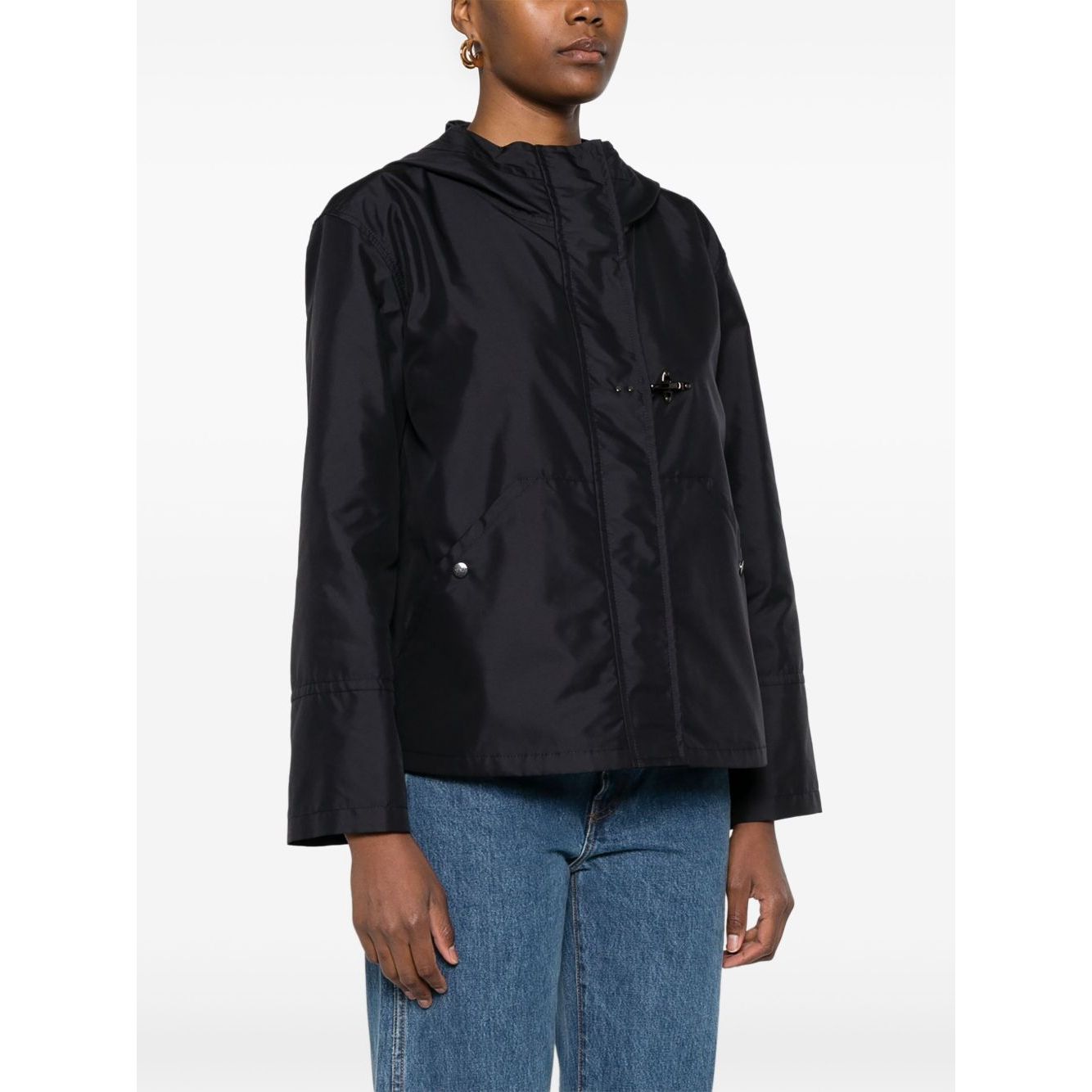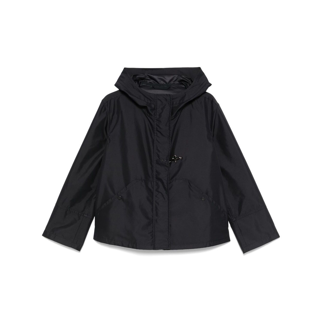 navy blue front press-stud and zip fastening long sleeves two press-stud fastening side pockets straight hem Short parka coat Size and Fit - This piece fits true to size. We recommend you get your regular size. Model is 1,75m / 5ft 8in wearing size S