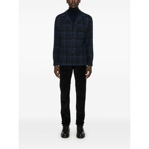 blue virgin wool blend front button fastening check pattern notched collar long sleeves buttoned cuffs chest flap pocket two side flap pockets straight hem Wool single-breasted jacket Size and Fit - This piece fits true to size. We recommend you get your regular size. Model is 1,84m / 6ft 1in wearing size 48 (IT)