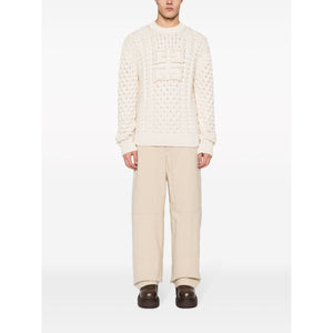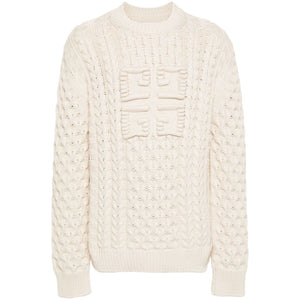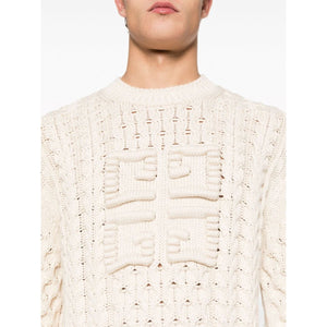ecru cotton blend chunky cable knit crew neck long sleeves ribbed cuffs and hem signature 4G motif straight hem Logo cotton crewneck sweater Size and Fit - This piece fits true to size. We recommend you get your regular size. Model is 1,84m / 6ft 1in wearing size M