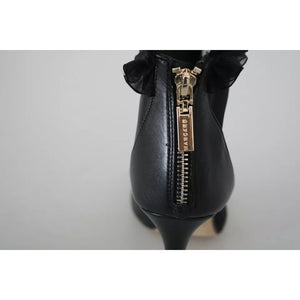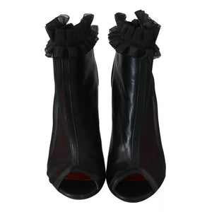 Mangano Black Leather Mesh Stiletto High Heels Peep Toe Boots Shoes