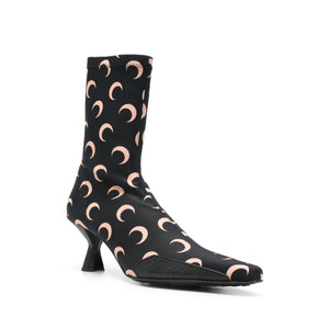 black almond beige soft scuba jersey crescent moon print pull-on style 60mm mid sculpted heel ankle-length logo-embellished side panels pointed toe branded insole leather and rubber sole Moon sock boots Size and Fit - Heel 2,4 in / 6 cm