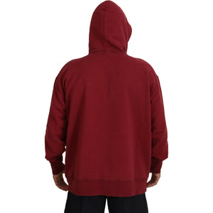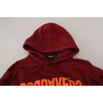 Dsquared² Maroon Cotton Tattered Hooded Printed Pullover Sweater