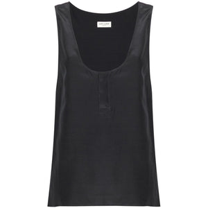 Saint Laurent Henley-neck silk tank top