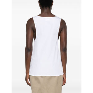 white cotton poplin texture U-neck sleeveless straight hem front button placket We've partnered with Good On You — an independent agency that rates how brands perform in relation to their impact on the planet, people and animals, with a multi-criteria rating simplified to a five points scale. In order to be awarded our conscious label, larger brands need to score a minimum of four out of five ('Good'), while smaller brands must score at least three out of five ('It's A Start'). This item comes from a brand rated three out of five ('It's A Start') by Good on You at the time it was added on FARFETCH. Please note, this is a brand-level rating and does not guarantee that this product is made with conscious materials. Learn more about what makes a product Conscious on our Conscious Criteria page Cotton poplin top Size and Fit - This piece fits true to size. We recommend you get your regular size. Model is 1,75m / 5ft 8in wearing size 36 (FR)
