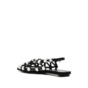 Grid rhinestone-embellished ballerina shoes from The Attico featuring black, calf leather, rhinestone embellishment, branded footbed, elasticated slingback strap, pointed toe and flat sole. Grid slingback ballets Size and Fit - Heel 0,6 in / 1,5 cm; Platform 0,4 in / 1 cm