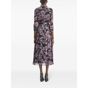 Pink/black, silk, floral print, pleated skirt, short front buttoning, side hidden zip closure, long sleeves and mid-calf height. Printed silk maxi dress Size and Fit - This piece fits true to size. We recommend you get your regular size. Model is 1,75m / 5ft 8in wearing size 4 (US)