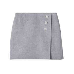 grey wool mélange effect brushed finish concealed side zip fastening faux wrap thigh-length Wool mini skirt Size and Fit - This piece fits true to size. We recommend you get your regular size. Model is 1,75m / 5ft 8in wearing size 4 (US)