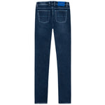 Elevate your denim game with Tramarossa’s masterfully tailored men’s blue jeans – a harmonious blend of classic design and modern sensibilities. Constructed with a touch of elastane for that perfect stretch, these regular-fit jeans boast a supreme five-pocket design topped with a luxe suede patch and a gleaming metal logo on the back. They’re not just jeans; they’re a statement of refined Italian craftsmanship.