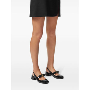 black calf leather patent finish low block heel elasticated slingback strap signature Medusa Head buttons bow detailing round toe branded leather insole leather and rubber sole Gianni Ribbon patent leather pumps Size and Fit - Heel 1,4 in / 3,5 cm