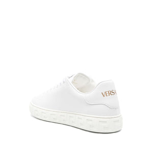 ivory white calf leather signature embossed Greca outsole detailing logo patch at the tongue contrasting branded heel counter branded leather insole front lace-up fastening round toe rubber sole This piece comes complete with a protective dust bag. This piece comes with a certificate of authenticity. Greca leather sneakers Size and Fit - Heel 1,2 in / 3 cm; Platform 1,2 in / 3 cm