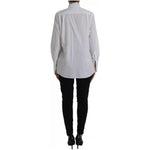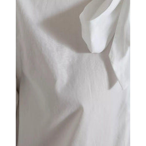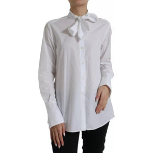 Dolce & Gabbana White Cotton Ascot Collar Long Sleeves Top