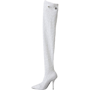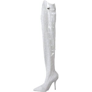 Dolce & Gabbana White Heels Stiletto Knee High Boots Shoes